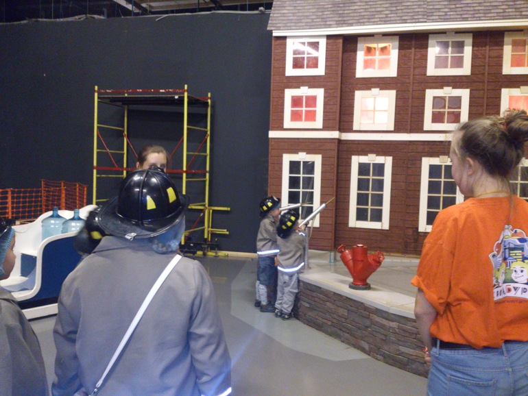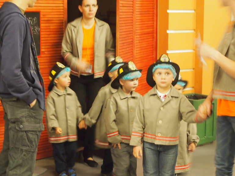 А там не только пожарные. Сначала краткий фильм-обучение. Потом переодевание в форму: