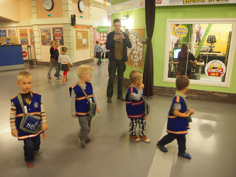 Но не на все профессии можно сразу попасть. Уже при входе идет градация детишек по возрасту (и по цене входного билета): 1,5-4 года и 4-14 лет. И на профессии тоже есть ограничения: