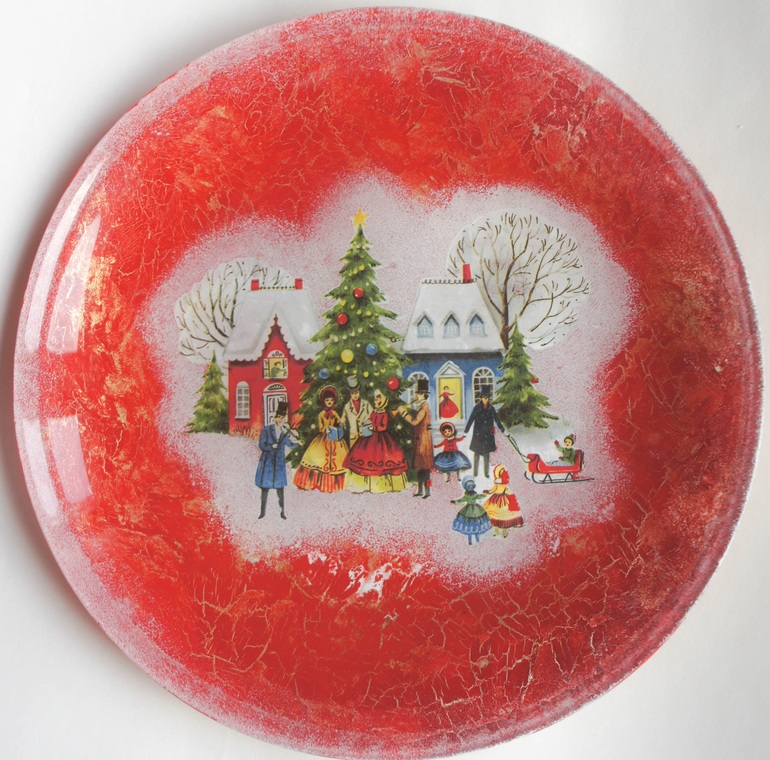 - Сделаете великолепную новогоднюю тарелочку, которая послужит отличным подарком близкому человеку и украшением праздничного стола,