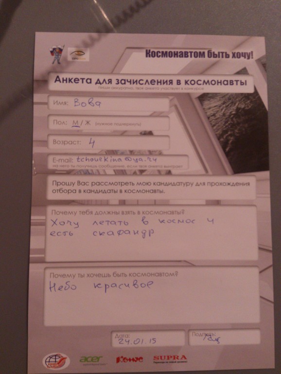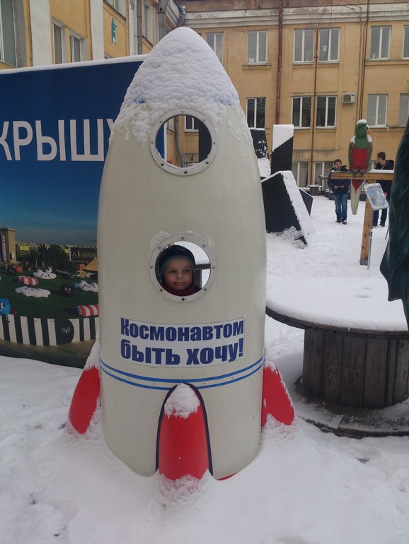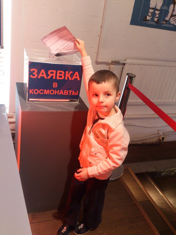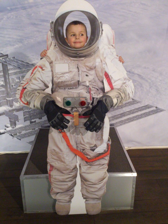 Мы не взяли наш костюм космонавта, т.к. на сайте написано, что там можно примерить настоящий. Спросила: "Где?". Оказалось - просунуть голову в нарисованный: