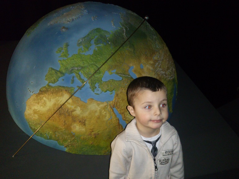 Дальше был полет на орбиту. Это темная комната с половинками земного шара: