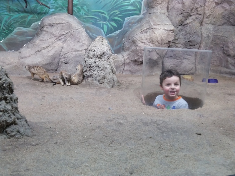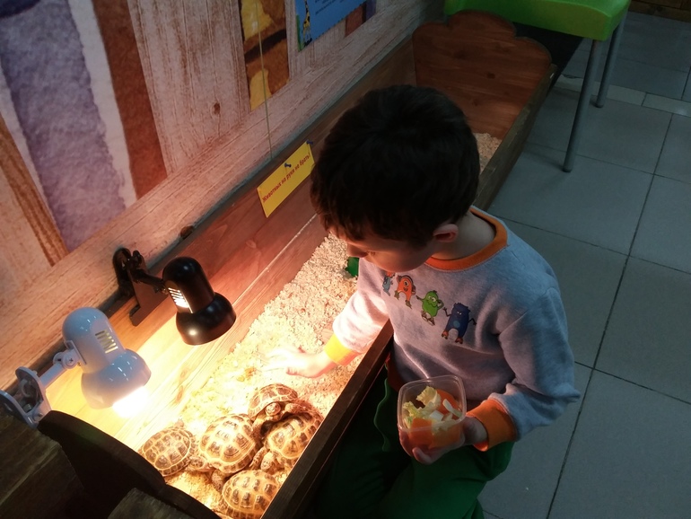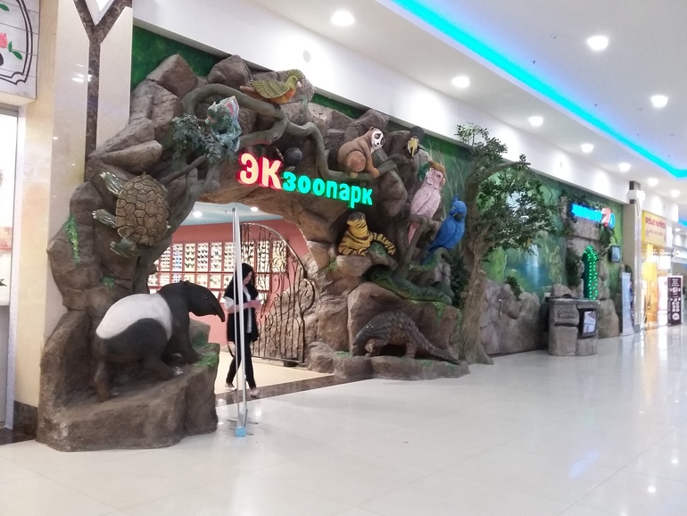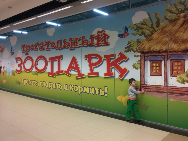 Давно слышала про ЭкЗоопарк в ТЦ РИО. Именно туда мы и направились с утра. Доехали до м. "Бухарестская" и тут Вова захотел в туалет и мы пошли в Макдоналдс. Зашли в ТК "Континент", а там Трогательный зоопарк: