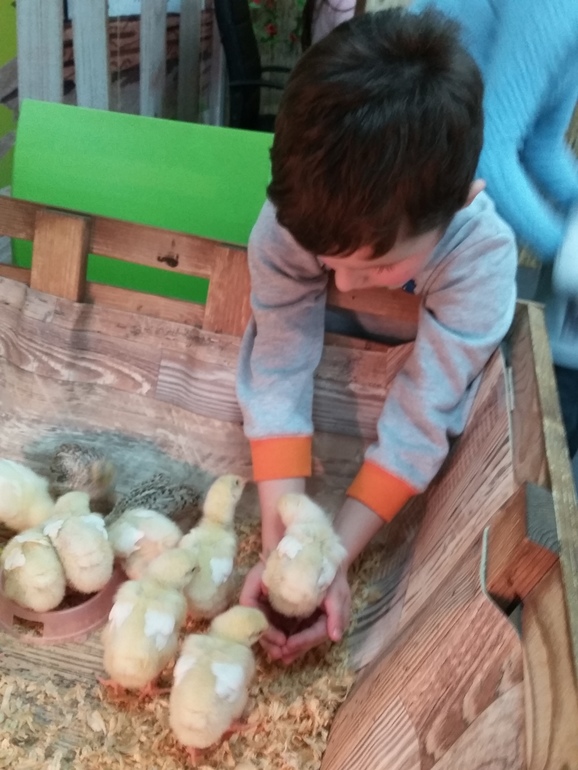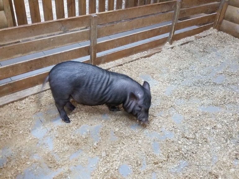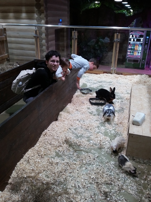 Есть еще лысые некто (похожи на морских свинок). Их дают гладить детям-аллергикам. Но для Вовы самым прекрасным оказался вот этот пушистый серый кролик с опилками в шерстке:
