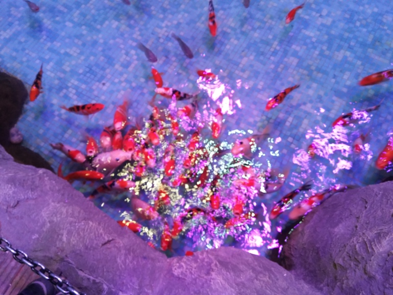 Уже на входе под мостиком красивейшие рыбки, которые сразу подплыли к нам: