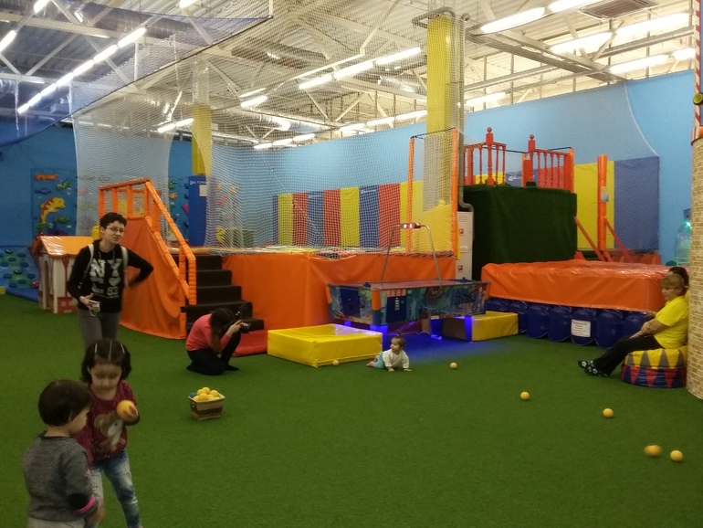 Еще мы зашли в детский городок с огромным лабиринтом (на день всего 400 рублей, на час - 250). Вовку просто было не вытащить. Кира обалдела от пространства: