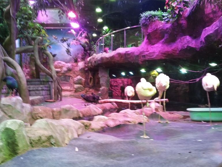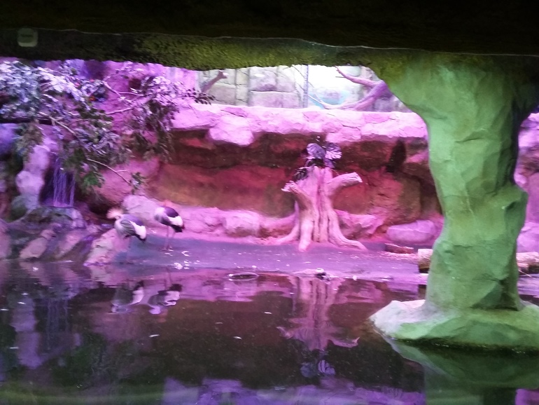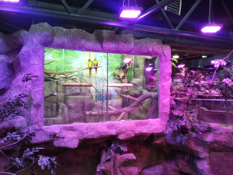 Есть попугаи, журавли, лебеди, утки, куры, туканы, птицы-носороги. Разные змеи, ящерицы (вот в таком дереве):