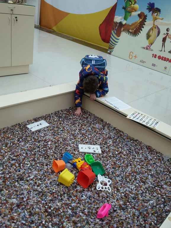 Для начала Вова поковырялся в песочнице с самоцветами (100 руб):