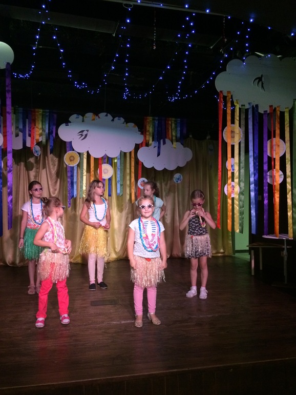 Затем пошли в школу танцев и девочки отрепетировав выступали на сцене)