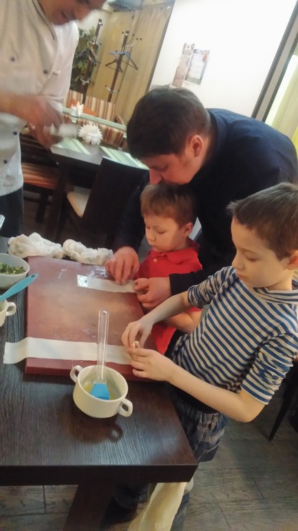Центр города.Сегодня во второй раз прошло очередные мастер-классы для деток. На кулинарном дети делали марокканские бривати.