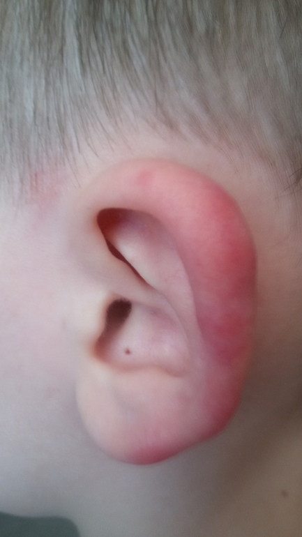 Аллергия и прочие высыпанияУтром проснулись с таким ухом. Даже не знаю что подумать.Девочки,подскажите,пожалуйста!