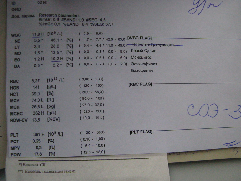 А зачем вы антибиотик-то пили??? У вас повышены лейкоциты. Это естественно, так как у ребенка явная аллергия - повышение эозинофилов.
