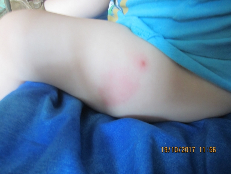 я вчера когда старшего из школы забирала встретила на улице нашего педиатора, она сказала, что так может быть, говорит третья сильная очень, мазать Траумелем и антигистаминное давать.