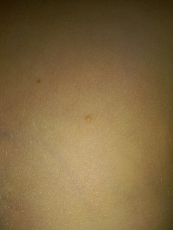 Похоже на малюска. Лечения не требует, само пройдет, но долго, может 6 месяцев или больше. Кожное вирусное заболевание. У моего старшего было несколько.