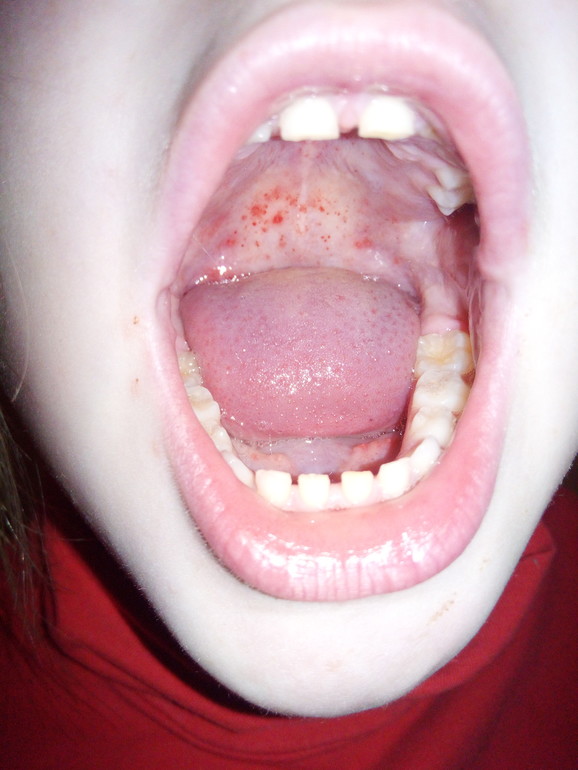Здравствуйте.так и не понятно, что это было. 3 дня и все прошло. Чуть позже этого поста появилась сыпь на ступнях и вокруг рта. Сейчас у младшей то же самое, только течение гораздо легче: температура 38, насморк,сыпь на голенях, предплечьях, на губах. Небо чуть красное. Уже сутки, как темпы нет. по описаниям вообще на коксаки похоже.