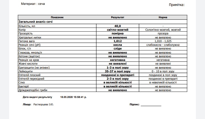 Лаборант смотрит в микроскоп, перед ним поле зрения такое круглое. Раньше он насчитывал до 35-37 лейкоцитов в поле зрения, передвигая предметное стекло, теперь в основном 8-12, в некоторых местах до 30. То есть лейкоцитов в целом стало меньше, воспаление уменьшилось, бактерий вообще не выявляется. Видимо помогает лечение.