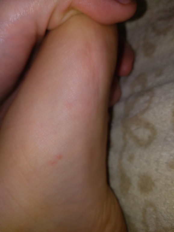 На фото как будто разные элементы. Красное очень похоже на следы укусов насекомых. А вот на подошве как пузырьки, может, от растения следы? От крапивы? Понаблюдайте, что будет на фоне приёма антигистаминного.