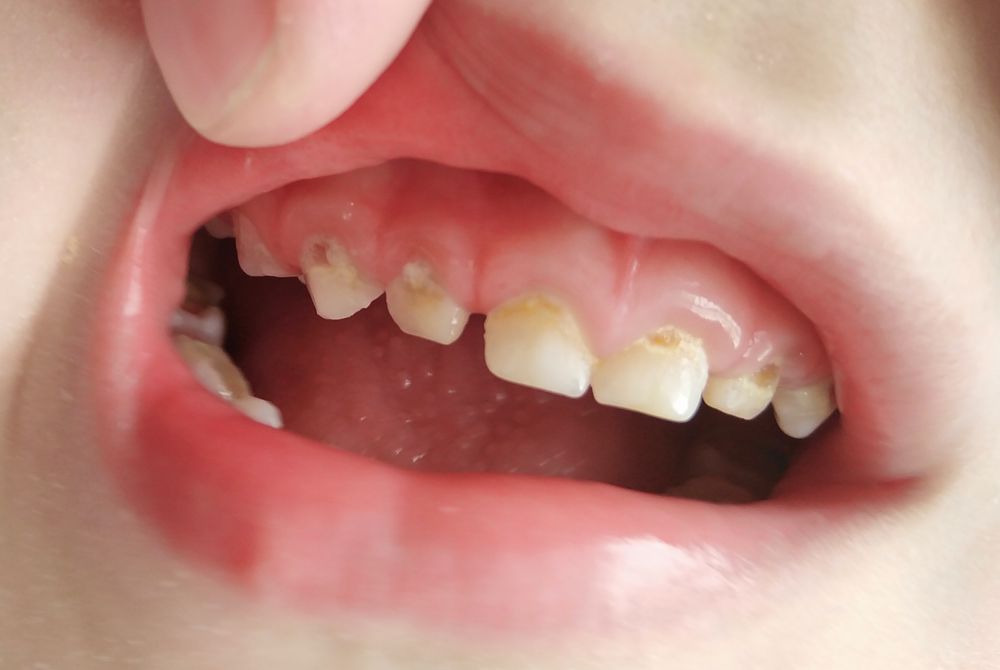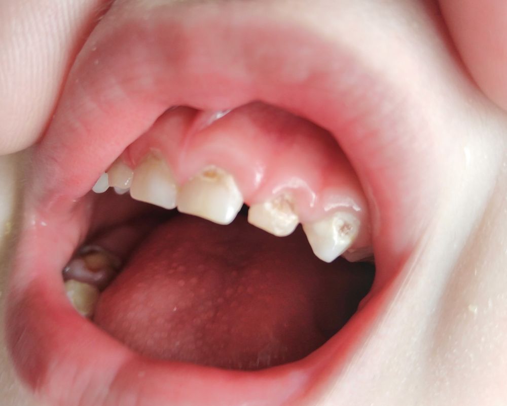 У старшего был так называемый бутылочный кариес (глупая была, сама виновата, но и плюс зубки ранние, в 2,5 мес вылезли, врачи говорят эмаль не успела окрепнуть, не знаю насколько это так). Были повреждены верхние резцы, благо хватило ума не повестись на уговоры врачей, а заняться лечением.
