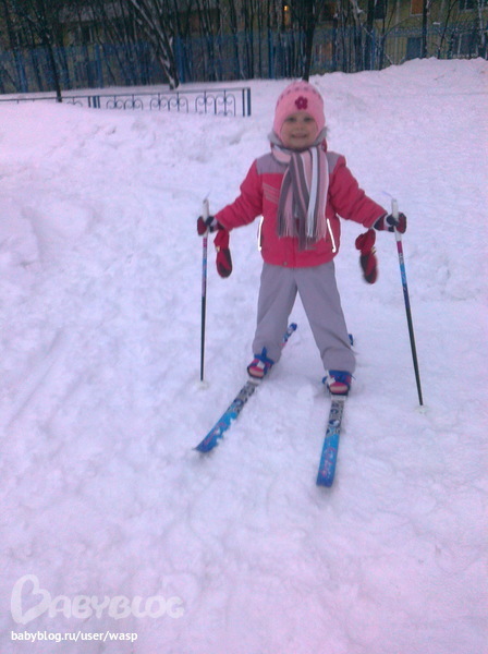 ЛыжиДашуля первый раз в 4,6 года встала на беговые лыжи.