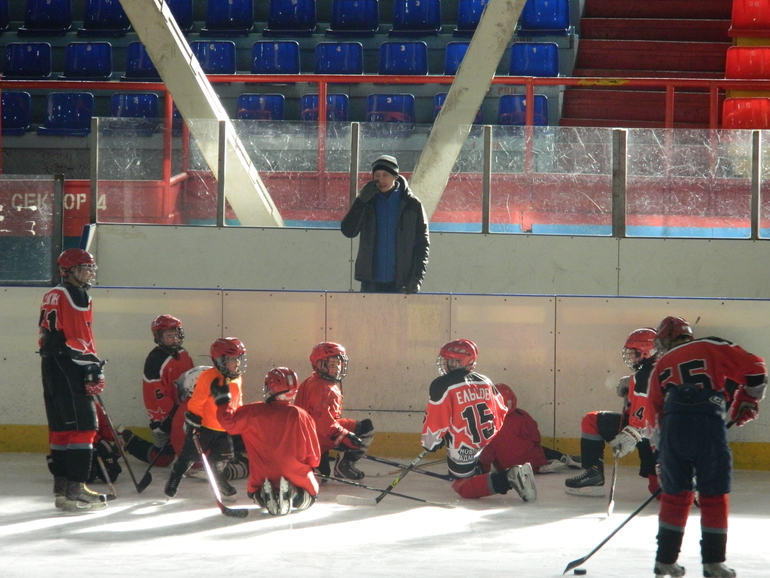 11 ноября первый раз пришли на хоккей,целый час одевали форму,на лед так и не вышли.12 ноября,пришли за час до тренировки,40 минут одевали форму,результат-20 минут полз до середины катка,20-обратно,на ноги ни разу не смог подняться.тренировки 6 дней в неделю по
