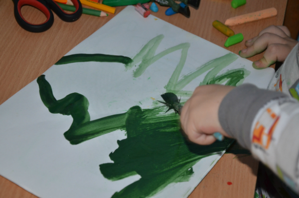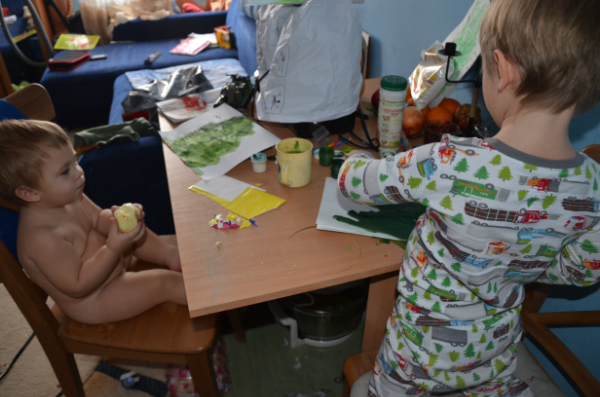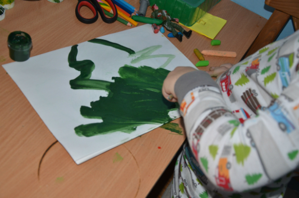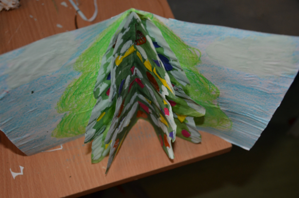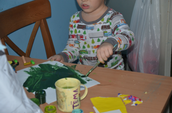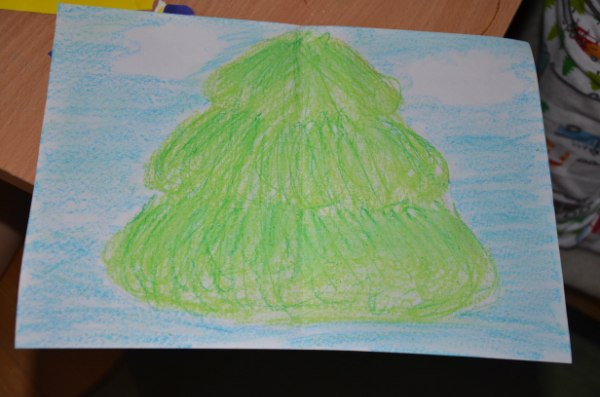 Далее потомок Репина торил сам, всё ж это детское творчество, бабушке подарим. Нужно просто нарисовать елки(в том саду была одна, но я решила модернизировать модель)