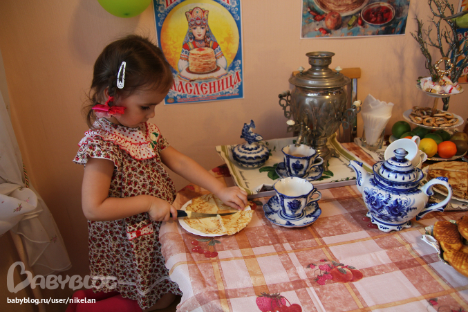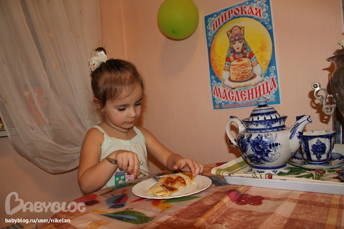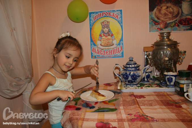 Ранее я подготовила картины и постеры на тему МАСЛЕНИЦА, немного рассказала Насте о празднике. Помимо главного продукта на столе естественно были и сопутствующие вкусняшки... салатик, икра, красная рыбка, варенье, мед, баранки, конфетки и т.д.