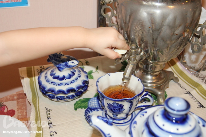 Самовар с дачи! Настя очень любит пить чай из него, на даче часто вечерами устраиваем чаепития.