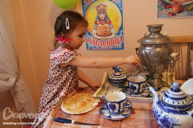 Активно чаевничать мы начали с четверга Масленичной недели, дочь пригласила своего лучшего друга Ярослава и его родителей к себе на чаепитие из самовара. Но Ярику пришлось остаться дома, т.к. он приболел((((, но Настенька была очень рада и его родителям Наталье и Андрею. Наш папа с Настей из садика и гости пришли в районе пяти вечера.