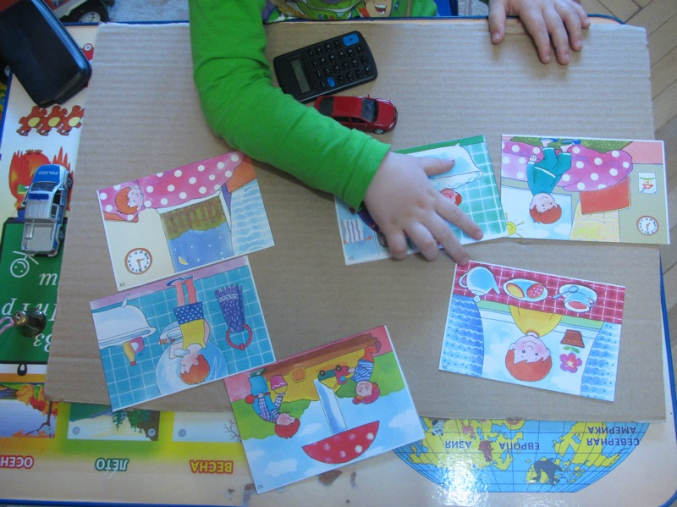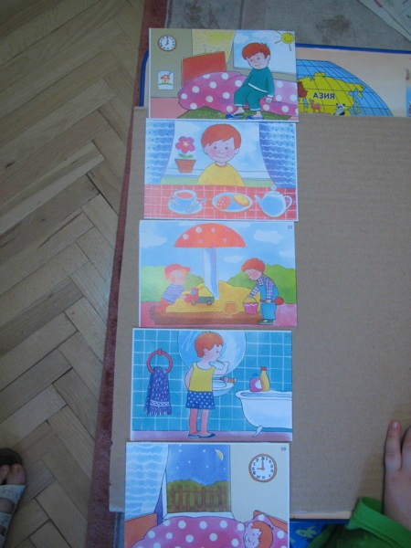 Раскладываем картинки по порядку. Что было сначала, что потом. Тема - обычный день, получился даже целый рассказ