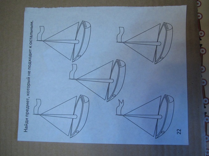 найти на картинке кораблик, который отличается от остальных