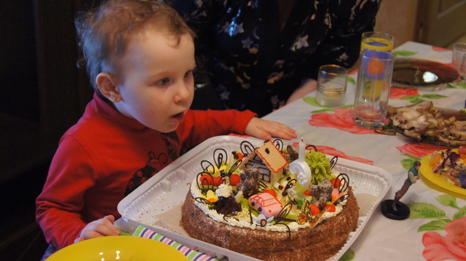 Ярче солнышка лучи,И родители четыреВ торт поставили свечи!Дуй сильней на свечи эти,Вспомни все свои мечты,И счастливей всех на свете,Словно в сказке станешь ты!