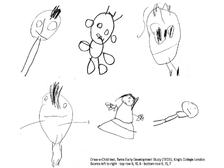 В возрасте 4 лет родители этих детей попросили их нарисовать картинку с ребёнком. Каждый рисунок был оценен по шкале от 0 до 12 в зависимости от наличия и правильного расположения частей тела (головы, глаз, носа, рта, ушей, волос, тела, рук и т.д.). Например, рисунок, на котором был изображён человечек с двумя ногами, двумя руками, телом и головой, однако без черт лица, набирал 4 балла. Дети также прошли устные и невербальные тесты на интеллект - как в возрасте 4 лет, так и позднее, в возрасте 14 лет.