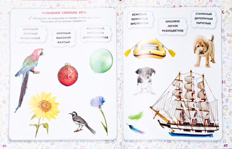 Это пособие подарила нам бабушка. В нем собраны различные упражнения для развития речи ребенка, позволяющие расшить словарный запас, научиться согласовывать слова в предложении, рассуждать, строить связный рассказ и пр. Задания расположены от простого к сложному. Упражнения с первых страниц под силу выполнить и 2-летнему малышу.