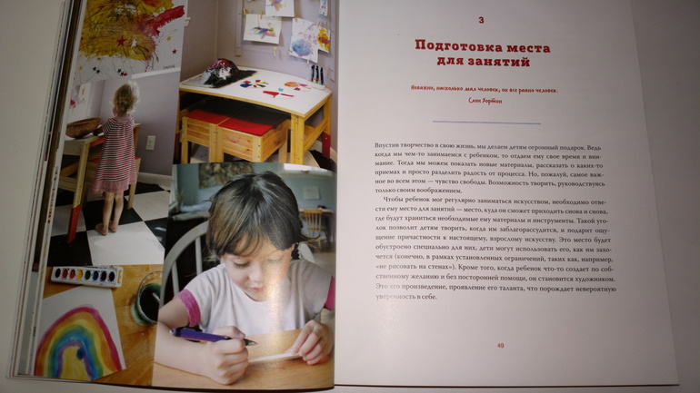 Оказывается, очень важно правильно реагировать на результат творчества ребенка. Целая глава ( Как поддержать начинающих художников) посвящена этому вопросу.