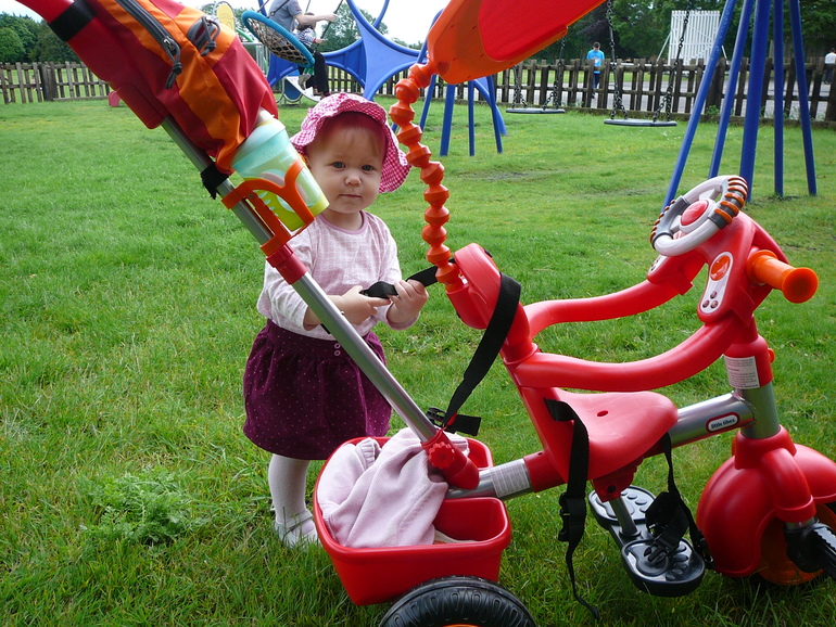 С Ладой мы действовали по-другому. Первым транспортным средством после коляски стал трехколесный велосипед с ручкой для родителей. Мы купили его дочке на её первый День рождения.