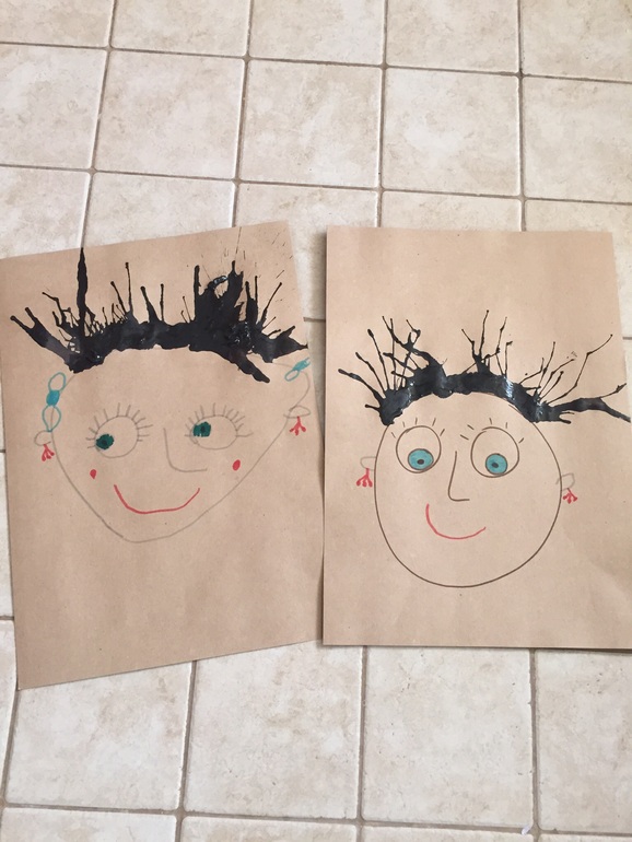 Нарисовали лицо, намазали побольше краски, в зону волос, вооружились трубочками и начали дуть......волосы человечков росли на глазах👍