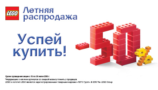 Собственно все в теме. С начала недели идет летняя распродажа ЛЕГО (и лего ДУПЛО тоже) со скидками 50%.