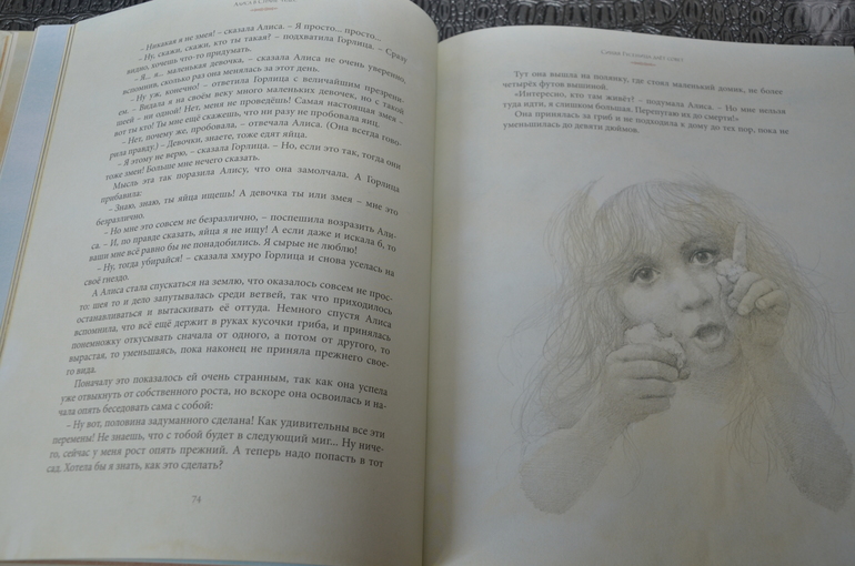 Иллюстрации прекрасны, волшебны, прорисованы исключительно. И их очень-очень много, можно часами рассматривать. И Алиса, вот именно такая, какой мне и представлялась.