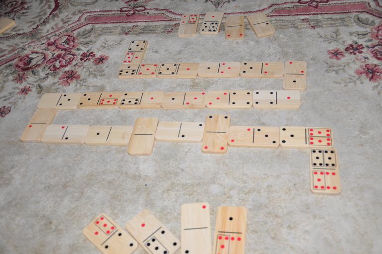 А потом, когда сын освоился среди количеств первого десятка, стали играть в разного вида домино.