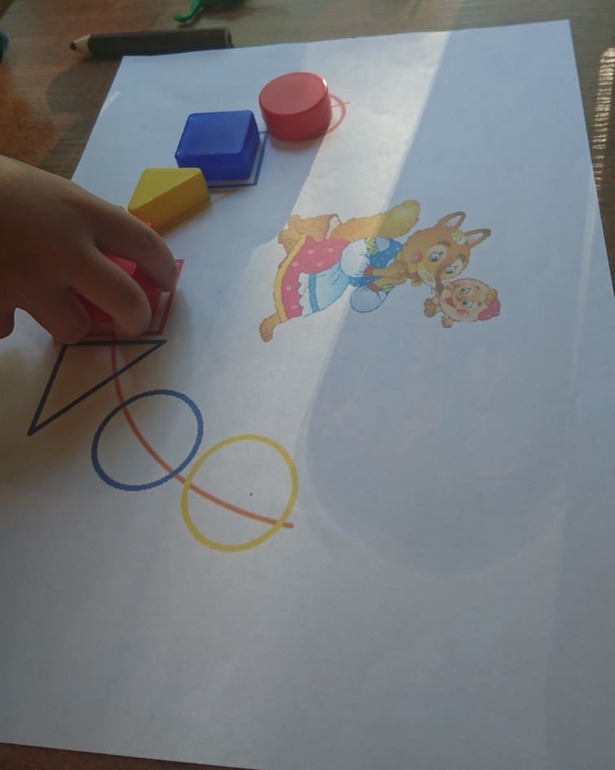 А Колобок ей в ответ: "Не ешь меня лисонька, я тебе бусики подарю". Помоги Колобку сделать из геометрические фигур бусы для лисы. (совершенствуем умение различать и называть плоские геометрические фигуры, соотносить предметы с картинкой).