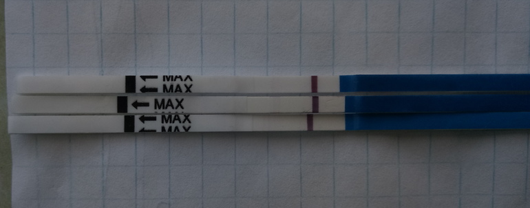 Пом не было возможности купить норм тесты и купила дешевых по 30 рублей Леди Чек, на всех были такие как на фото, полезла в инет - там нашла что они вруны, не стала больше себя мучить и сдала хгч в 10 утра и до часу ночи ждала результат, пришел 152МЕ/л