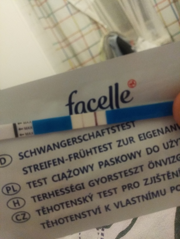 12 день ДПО, цикл четкий все день в день, О была 11.04 ( я чувствую ее очень хорошо) 19.04 спала весь день, вот и насторожились, обычно не бывает такого, и живот тянул как на М, но они должны быть 25.04, а сегодня не выдержала и утром тестик замочила, появилась тоненькая еле заметная полосочка, очень на реагент похожа, но потом тест высох и она розовенькая еле видная была, к вечеру решила ещё один замочить и вот что получилось)