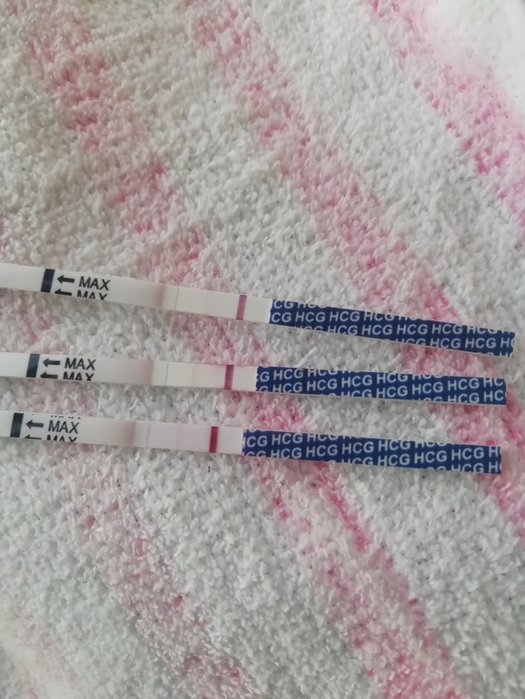Добрый день. 2 дня назад выкладывала свои тесты с еле заметным полосочками 😍9 дпо (2 верхних) 10 дпо нижний
