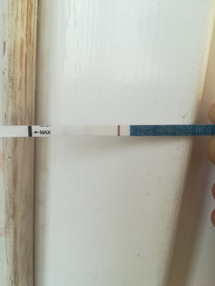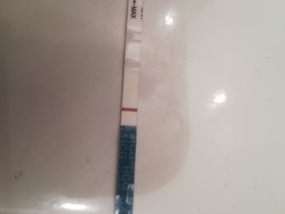 Если это долбаный мама чек, то на нем даже на сухом полоска видна. В последнее время очень испортились тесты, почти все реагентят, к сожалению. Может рановато пока?)