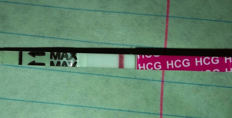 У этого теста полоска не там, а как раз в том месте, где у вас четкая белая полоса. Тест отрицательный.