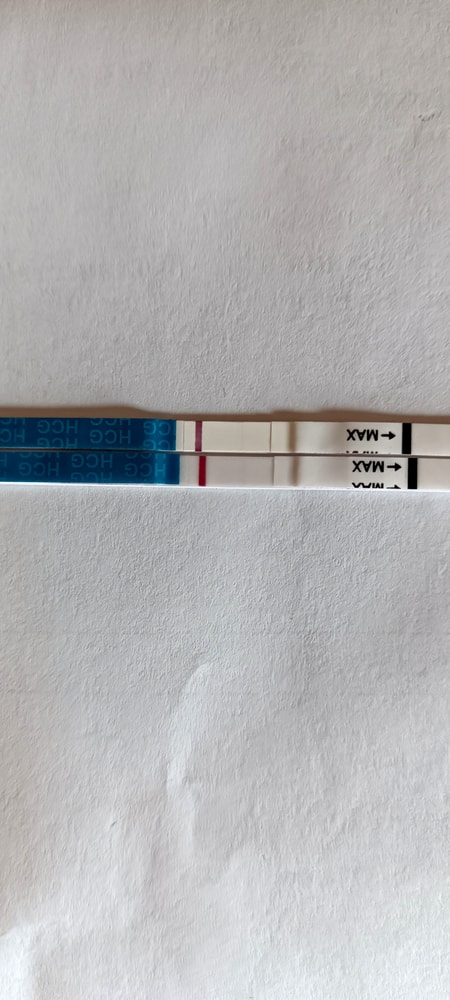 В предыдущий цикл отпустила ситуацию, и почему-то в этот цикл снова решила сделать тест ещё до задержки , верхний это вчера вечером, нижний сегодня утром. Я же не одна что-то вижу? Или это на обоих реагент? Позавчера тоже делала, фото нет, но там было нечто подобное, только гораздо бледнее ( но позавчера был фемитест, которые как начиталась сильно и часто реагентят) на фото Эвитест, примерно 10-11 дпо, но у некоторых на этом сроке уже такие яркие полоски, что посещают мысли, что это просто реагенты