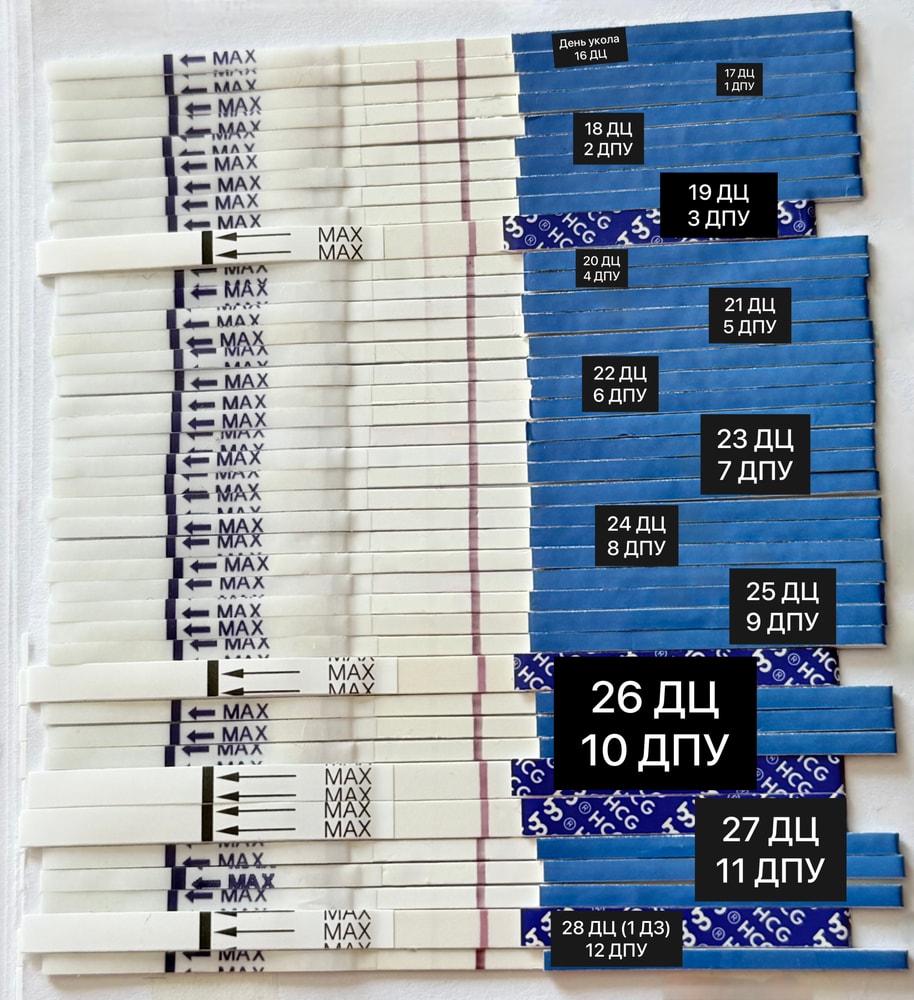 Но у меня была своя овуляция без тригер. Жёлтое тело былр и ещё фоликул 18-19мм был