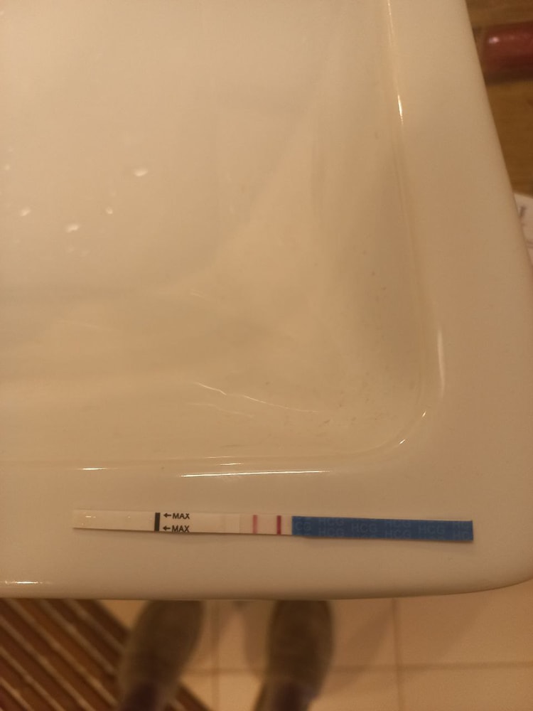 3 цикла пролетных. Сегодня 27 дц, должны быть месячные. Но грудь болела очень странно (именно болела+болят соски). Есть другие странные признаки. Решила сделать тест не дожидаясь задержки, и вот что мы видим. Подскажите, это же она, хоть и не яркая?