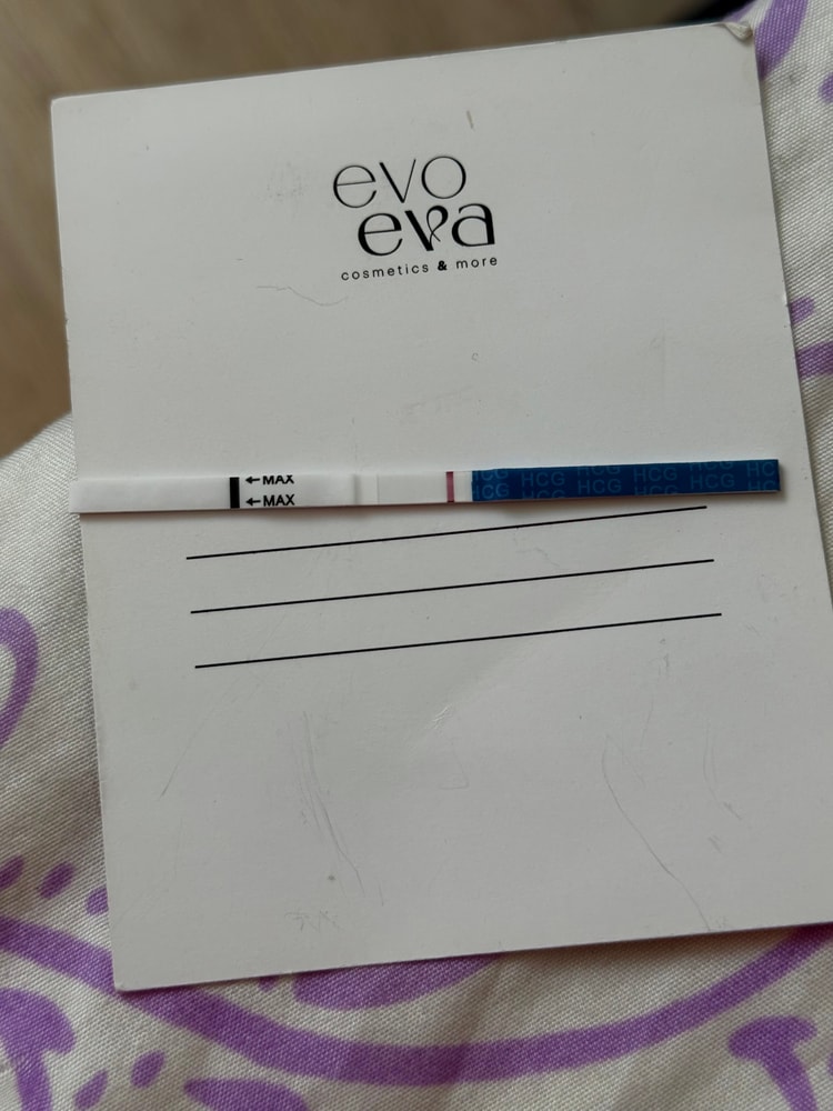 Началась и моя тестомания 🤣цикл у меня длинный (31). Недавно тянул низ живота и конечно болит грудь. Тест Evitest plus. Что нибудь есть?