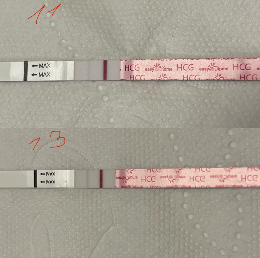 Наконец-то пришли мои тесты и можно продолжить. Пока что мне все нравится по динамике 😍 в предыдущие неудачные беременности хгч рост ооооочень медленно, соответсвенно разницы на тестах особо не было видно