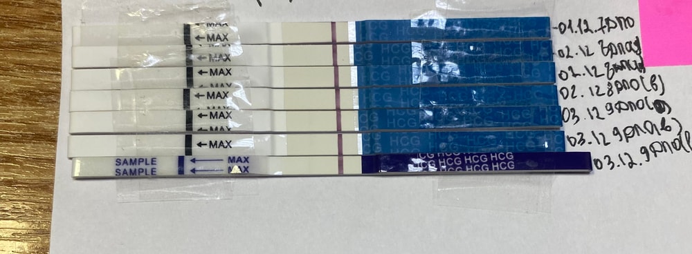 Варвара, крепитесь, но это не реагент) слишком ярко для реагента) да еще и сразу на нескольких. Я б после таких полосочек , все тесты ,что у меня есть замочила бы 😄